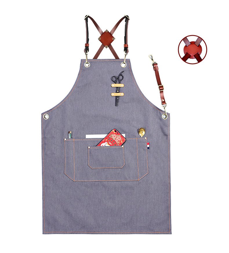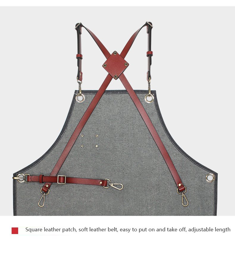- Design & Purpose: This denim apron is versatile for coffee shops, flower art, hair dyeing, perm dyeing, and artist custom catering. It serves as ideal work clothes in kitchens.