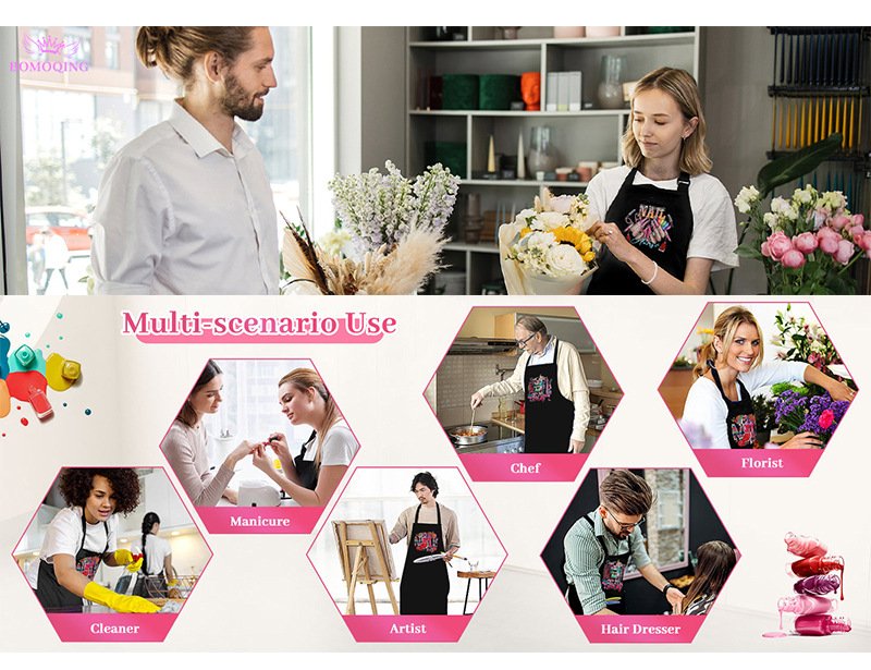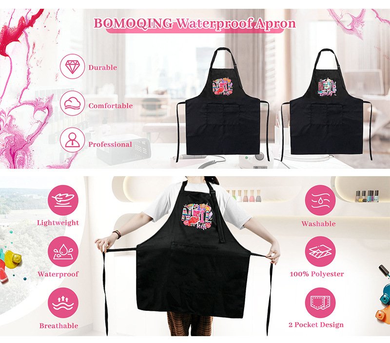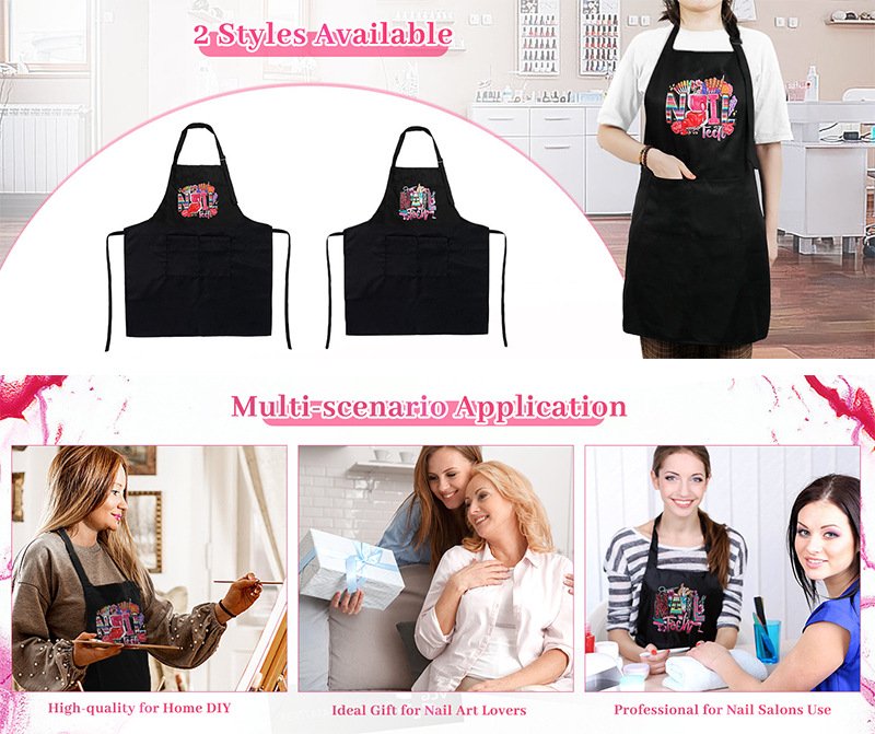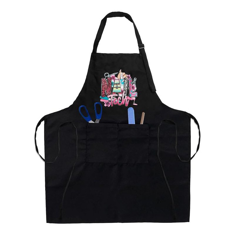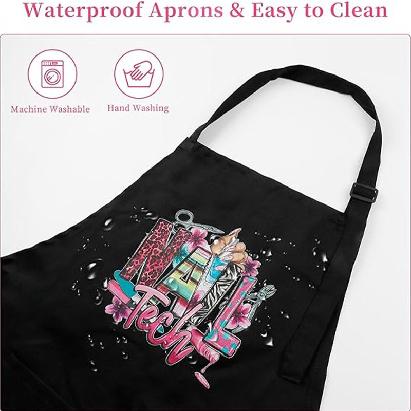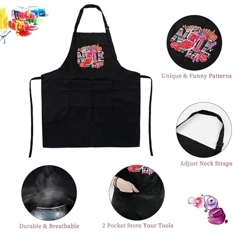 This apron is ideal for nail salon work, combining functionality with a playful cartoon design.
