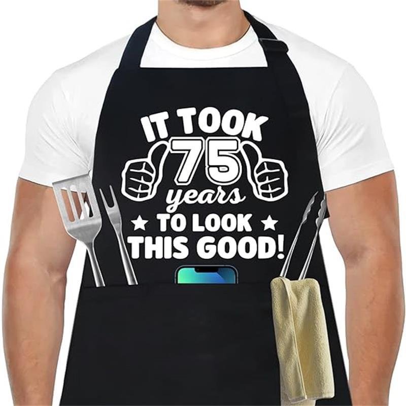 - Design: Adjustable buckle, one-size-fits-all, black color with a humorous print that reads, “It took 75 years to look this good!”