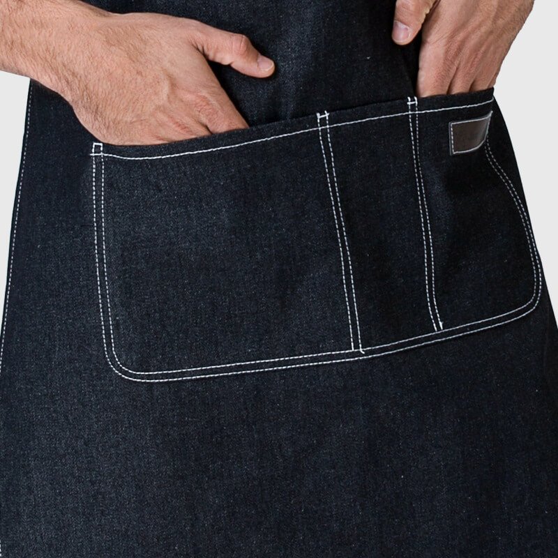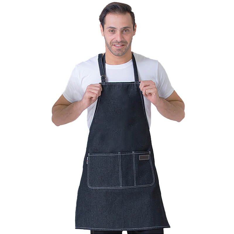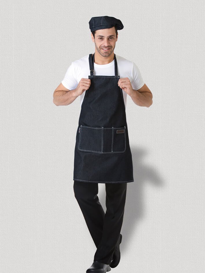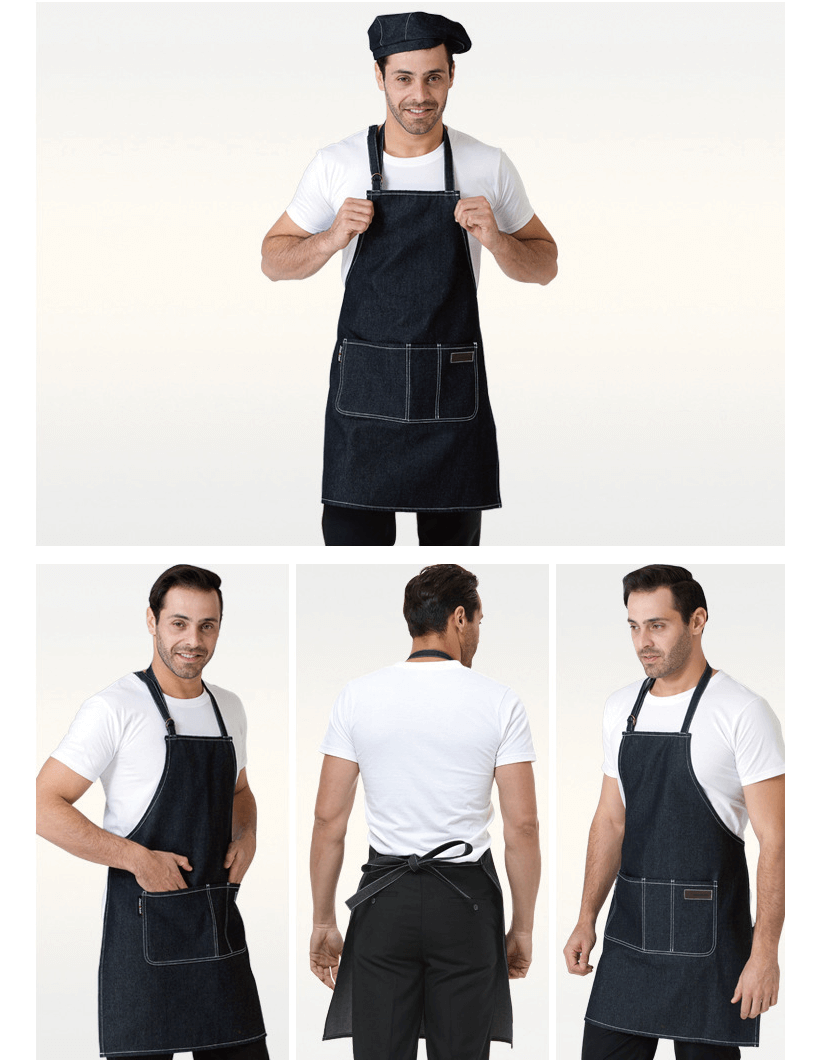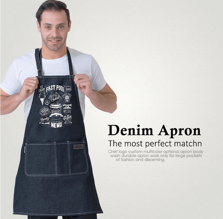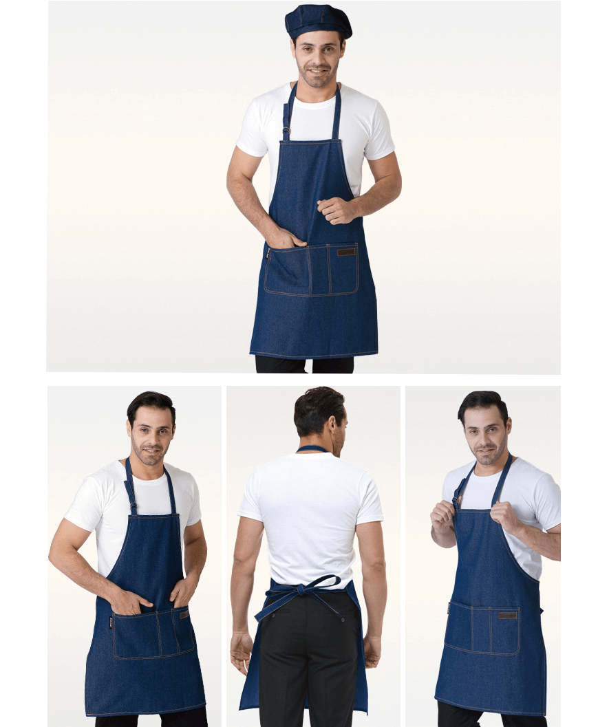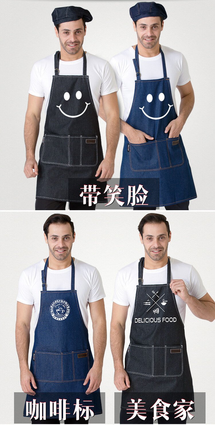 Fashion denim apron with logo print, bakery dessert chef, milk tea restaurant waiter apron