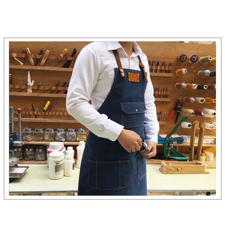 Korean version of men and women’s fashion denim aprons customized wholesale coffee shop thickened work clothes customized logo apron printing