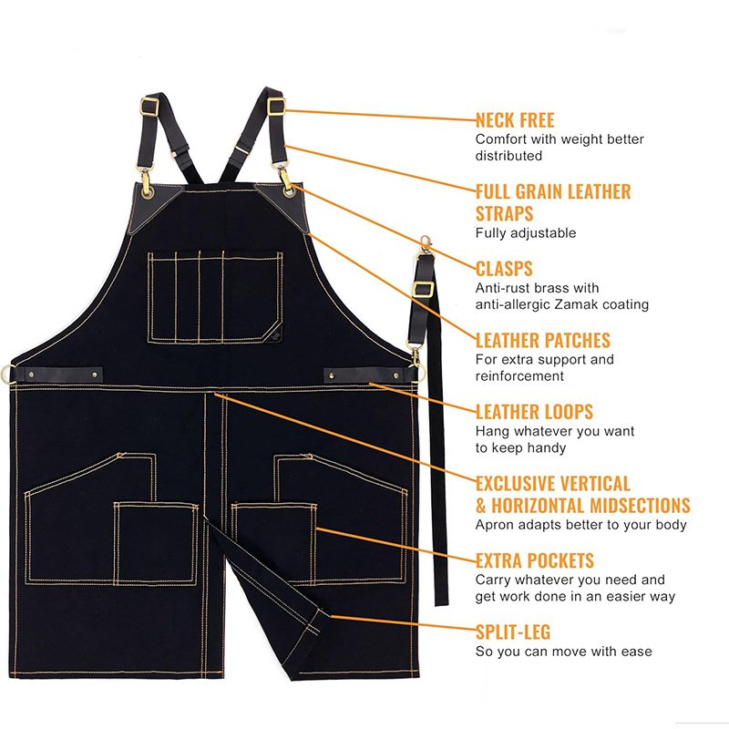 Sail manufacturer foreign trade canvas suspender apron cafe bar gardening outdoor work wear apron printing logo